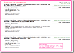 Penulis terpaksa membandingkan dengan harddisknya dengan menggunakan Newegg karena di web Indonesia local tidak ada yang menjual harddisk 7200 rpm. Satu-satunya cara untuk mendapatkan harddisk 7200 rpm yang penulis tahu adalah dengan memesan laptop DELL dan minta secara khusus.