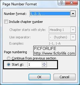 Klik pada Start at dan pilih 1. Hal ini akan mengubah angka 4 menjadi 1. Demikianlah maka hasil akhir akan terdapat 10 halaman dokumen kosong dengan 3 halaman angka romawi dan 7 halaman angka biasa.