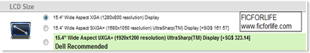 Monitor yang penulis maksud dalam judul adalah monitor dari laptop DELL LATITUTE 830. Di website-nya disediakan beberapa pilihan seperti pada gambar. Jika Anda ingin membeli laptop yang kuat dan mudah dibawa-bawa dengan monitor full HD (1900 x 1080), maka laptop ini adalah yang anda inginkan. Harganya? Cukup tambah 2 jutaan dari spek semula.